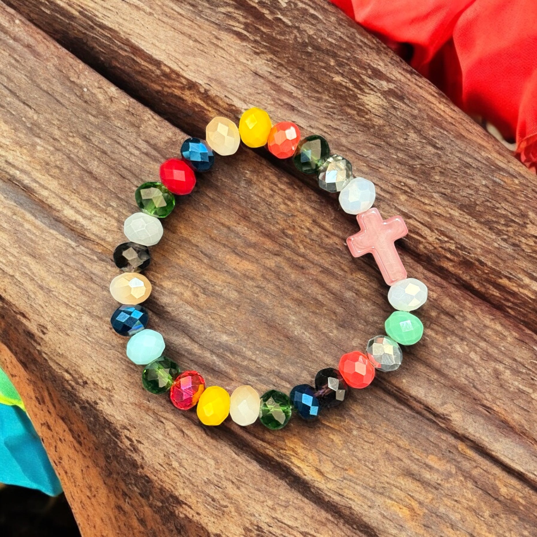 Handmade with vibrant beads and a delicate cross charm, this bracelet symbolizes faith, strength, and blessings. Comfortable and colorful, it’s perfect for everyday wear or gifting to someone special.